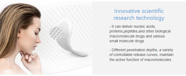 Innovative scientificresearch technology- It can deliver nucleic acids, proteins,peptides,and other biological macromolecule drugs and various small molecule drugs - Different penetration depths, a variety of controllable release curves, maintain the active function of macromolecules |